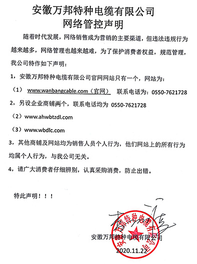 鄭重聲明:安徽萬邦特種電纜有限公司官方網(wǎng)站為:www_wanbangcable_com.bjcentralunion.com,除此之外無任何子網(wǎng)站或合作網(wǎng)站,其余均為假冒偽劣。電話:0550-7621728 13485756353 地 址:安徽省天長市滁州高新技術(shù)產(chǎn)業(yè)開發(fā)區(qū)經(jīng)四路29號